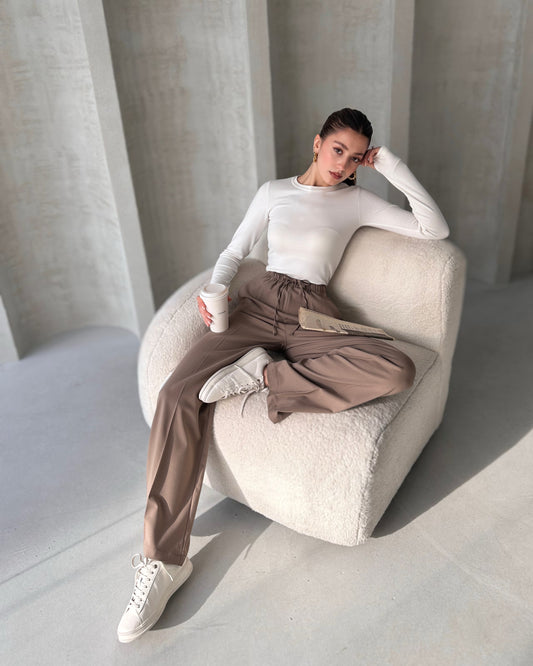 Bohem Vizon Yüksek Bel Bol Kesim Şık Pantolon