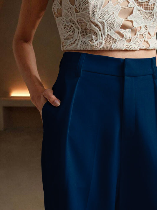 Lacivert Yüksek Bel Bol Kesim Wide Leg Palazzo Pantolon