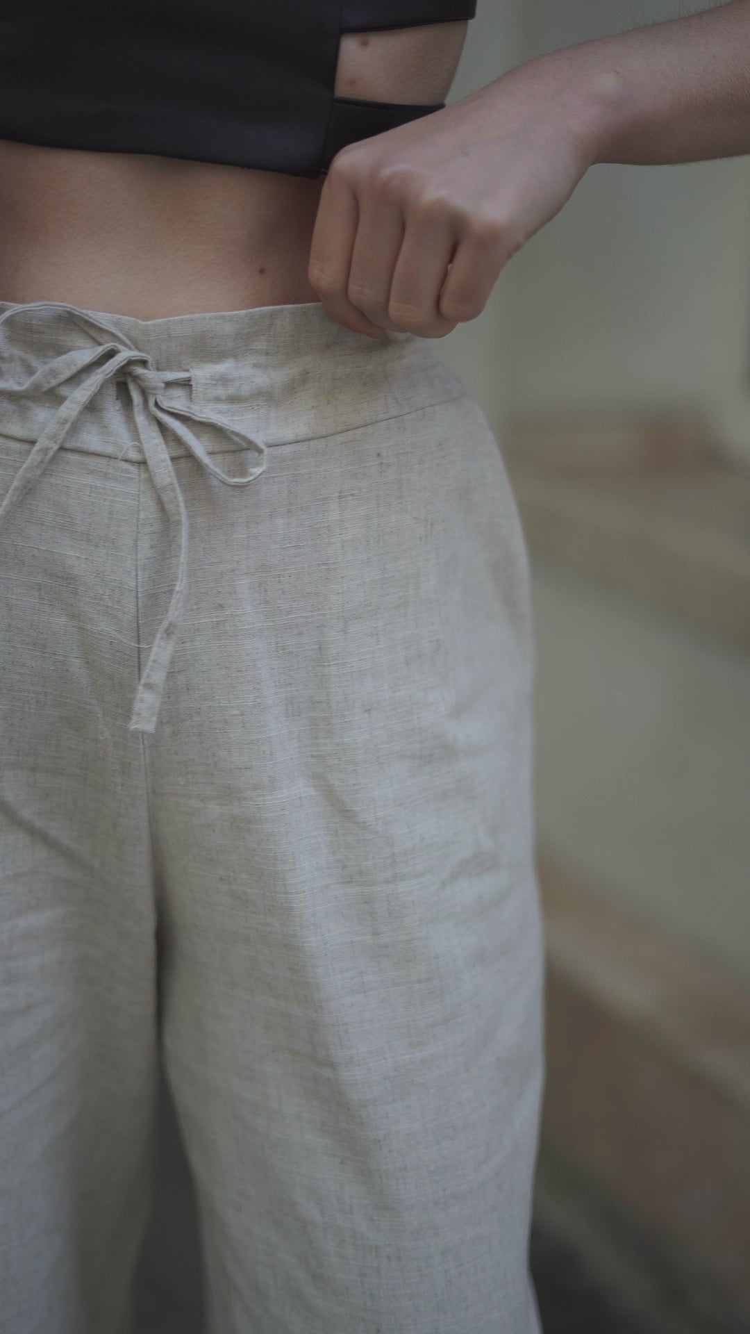 Açık Krem %100 Organik Keten Yüksek Bel Pantolon