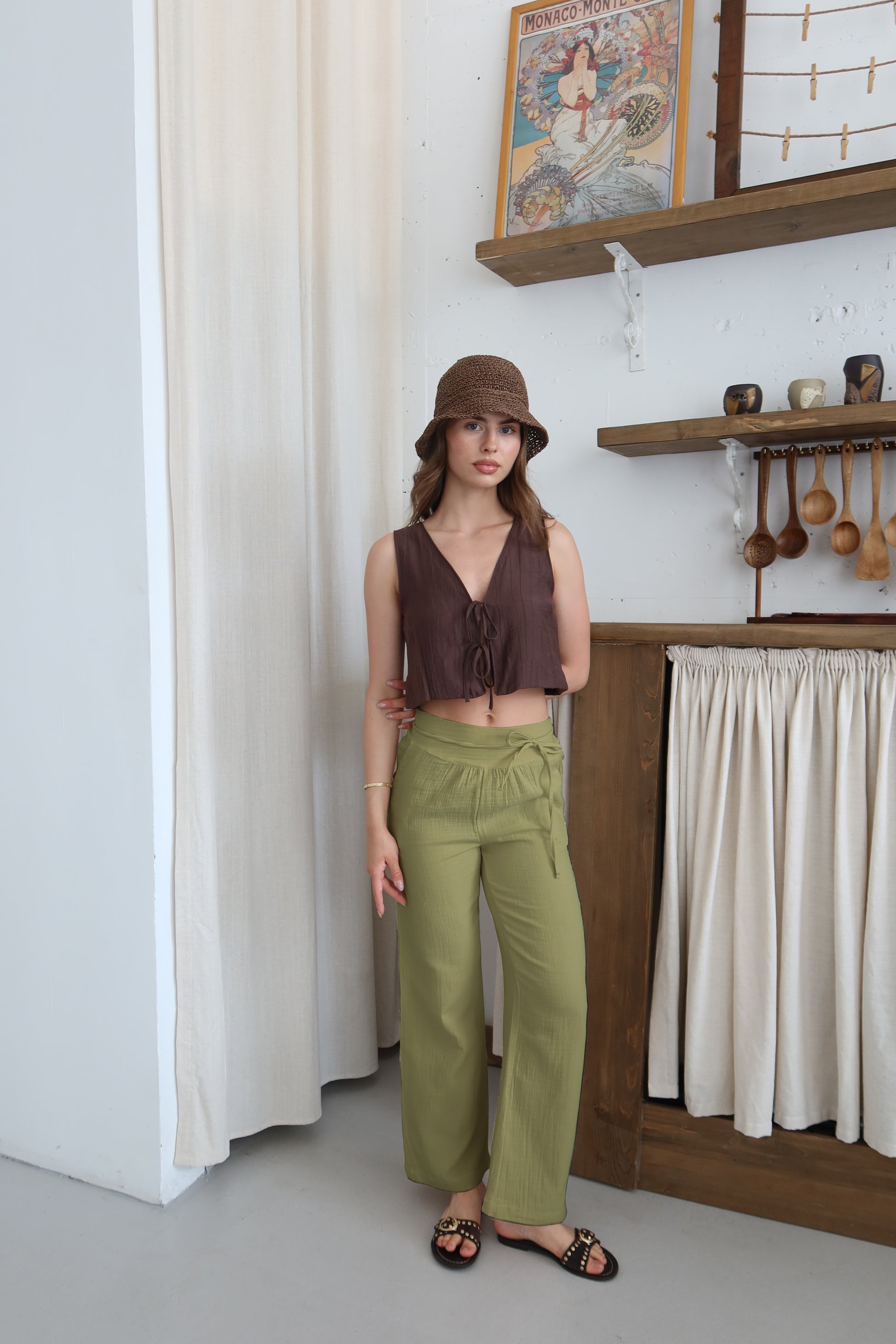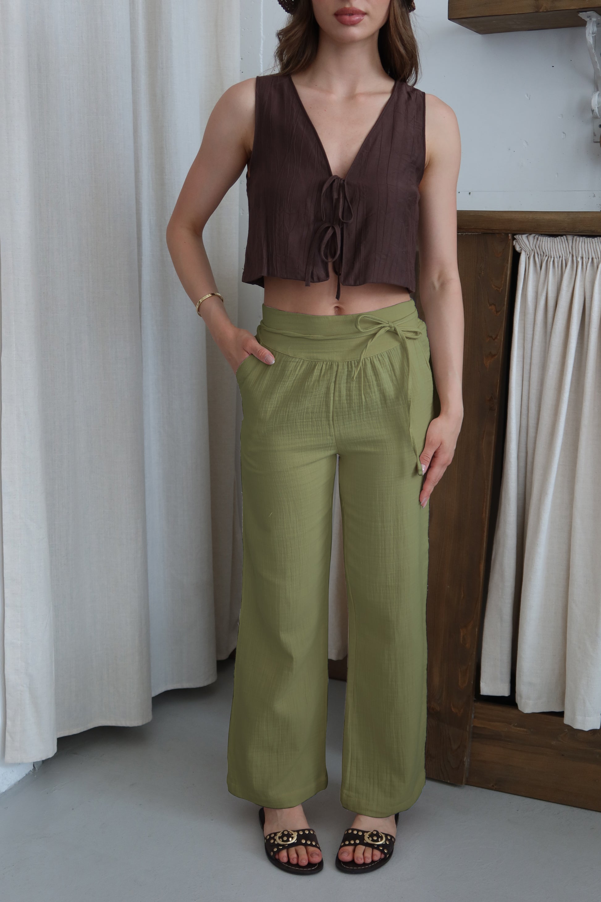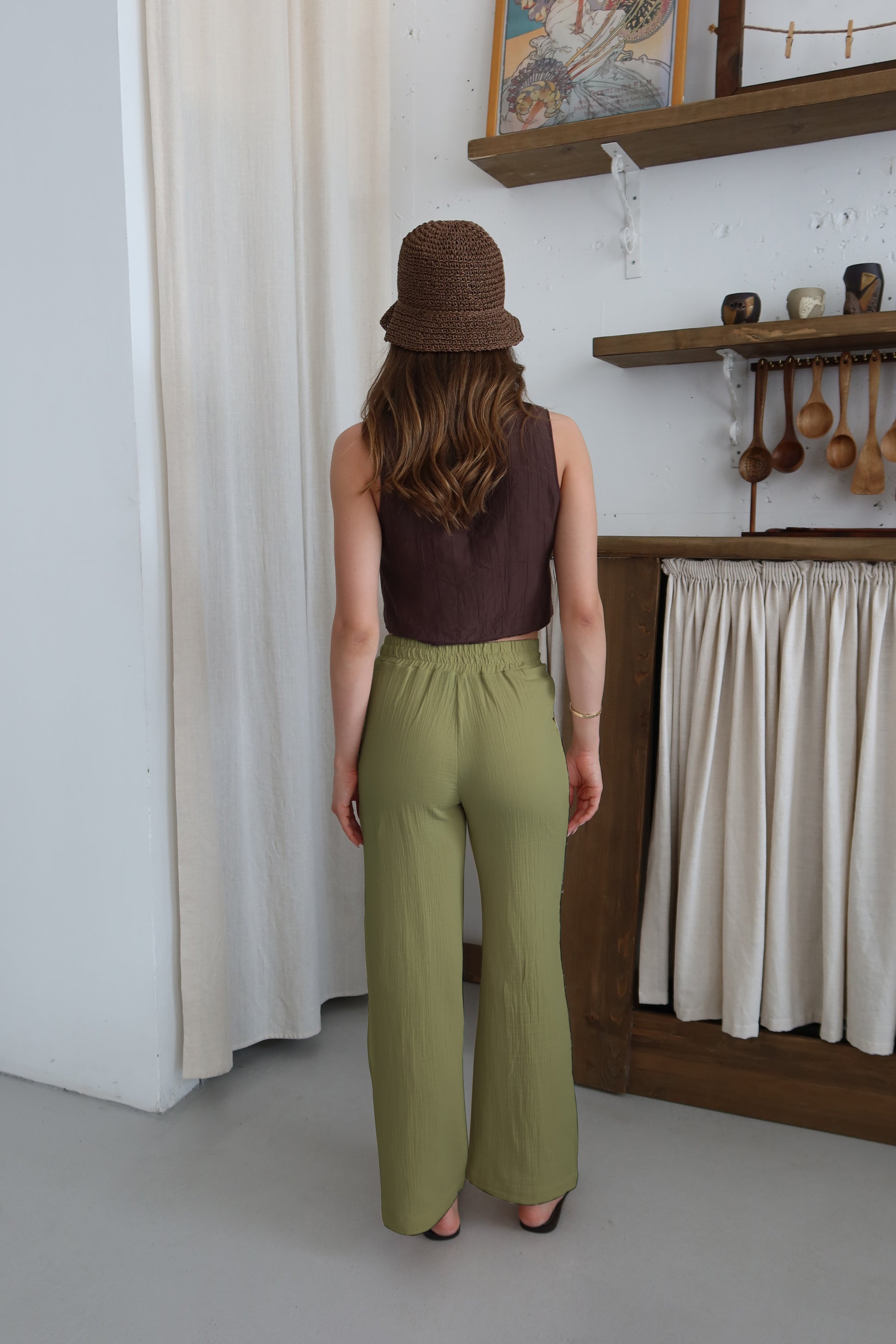 Çağla Yeşil %100 Organik Pamuk Müslin Pantolon