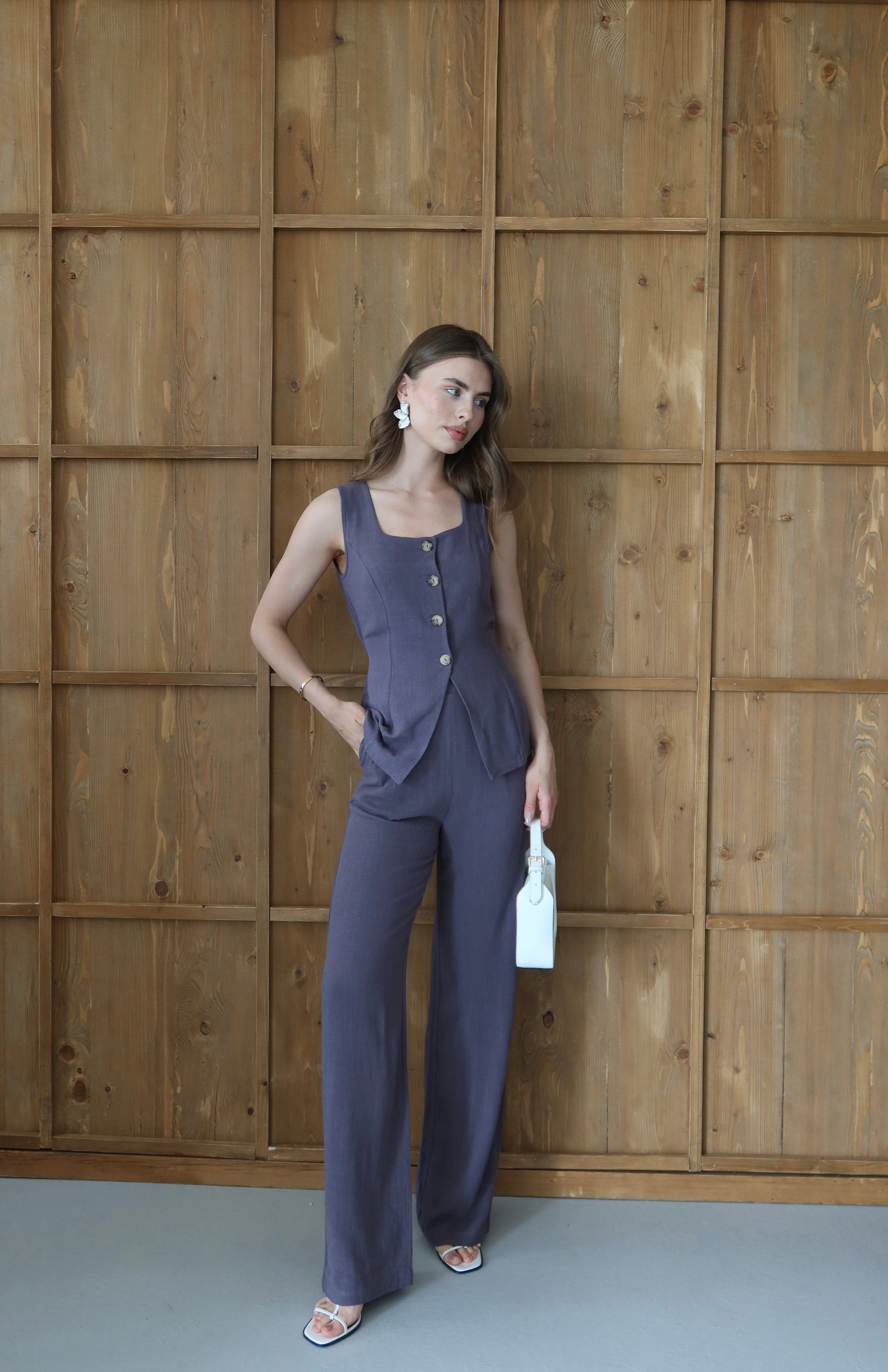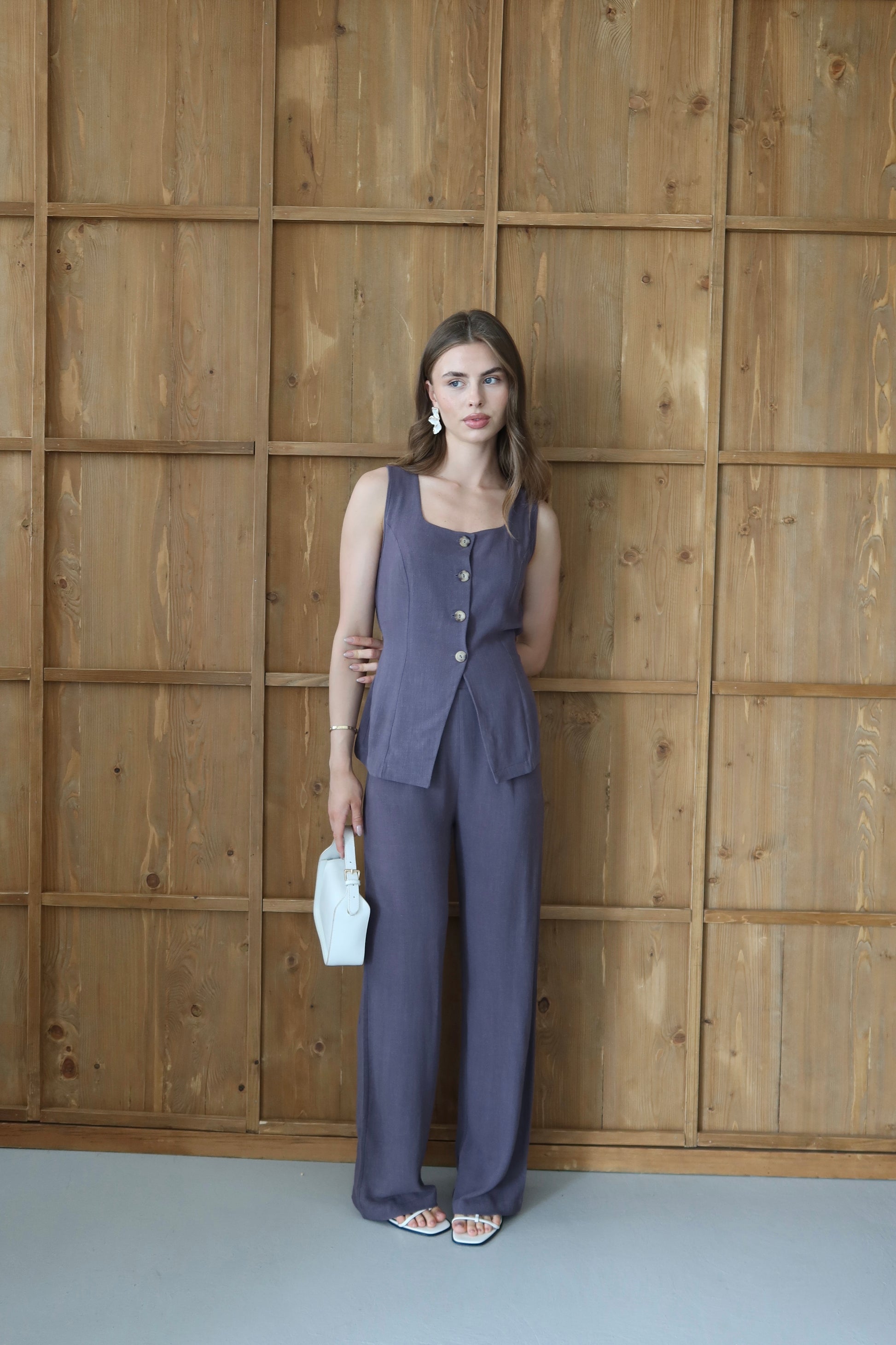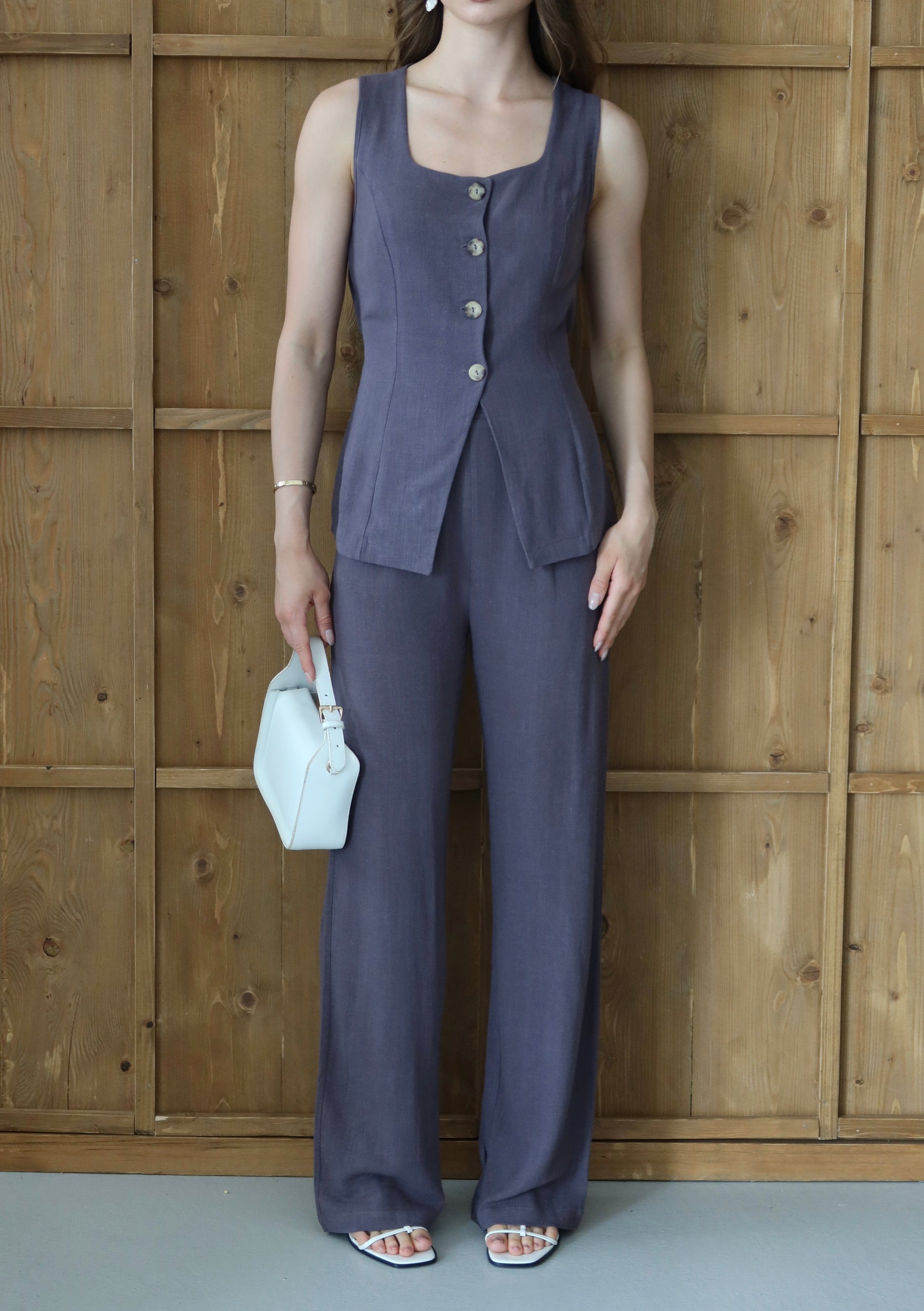 Antrasit %100 Organik Keten Premium Yelek-Pantolon Takım
