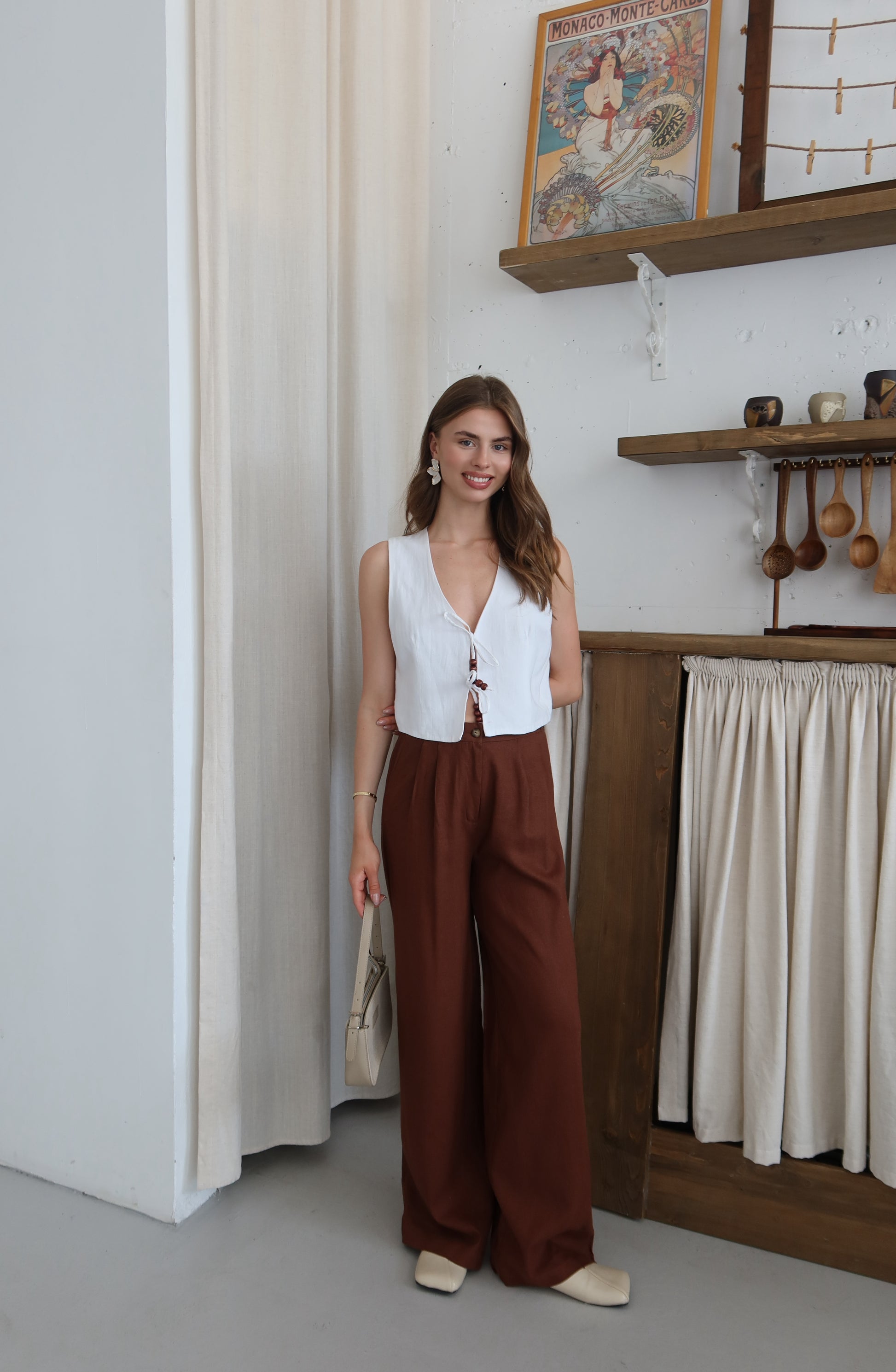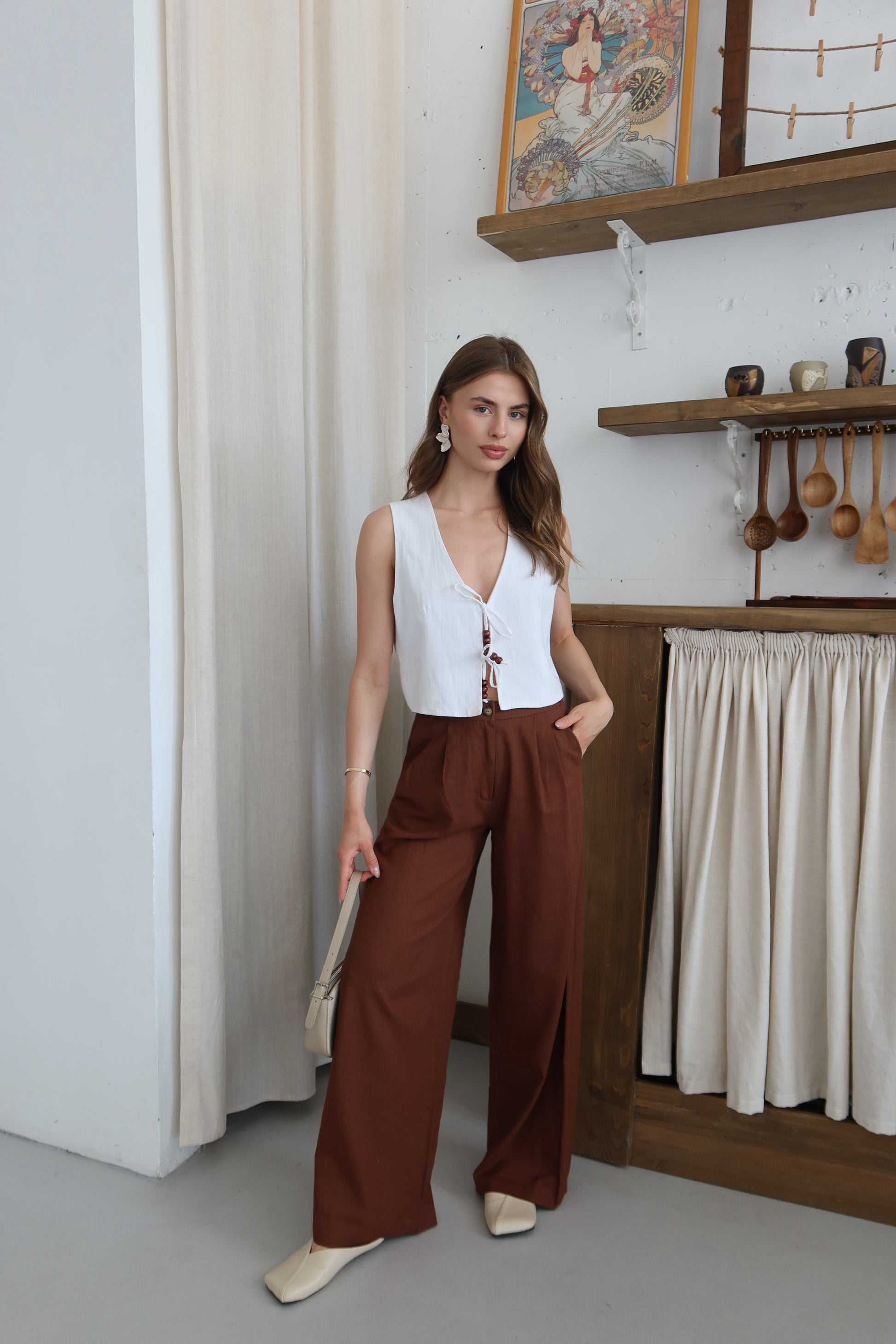 Terracotta %100 Organik Keten Yüksek Bel Pantolon