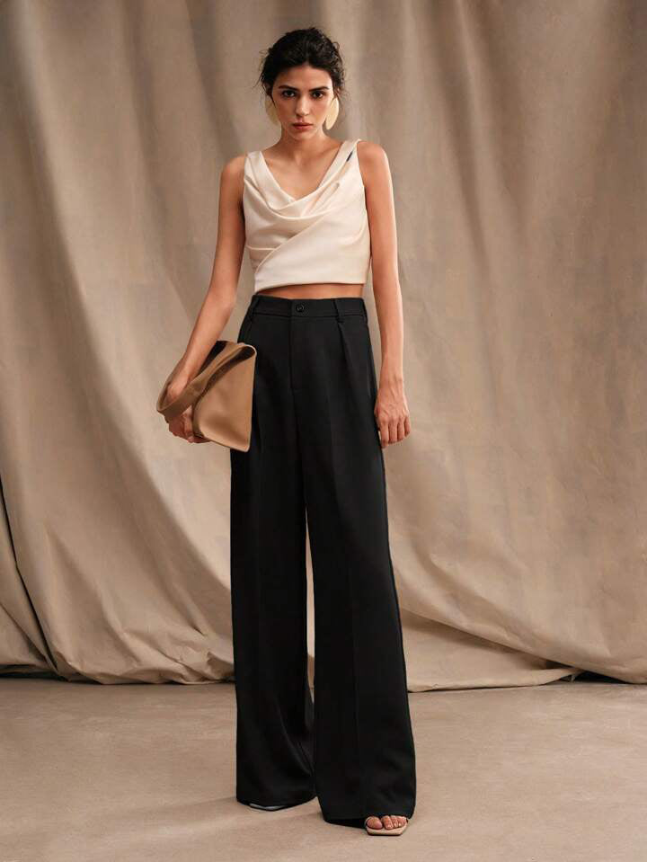 Siyah Yüksek Bel Bol Kesim Wide Leg Palazzo Pantolon